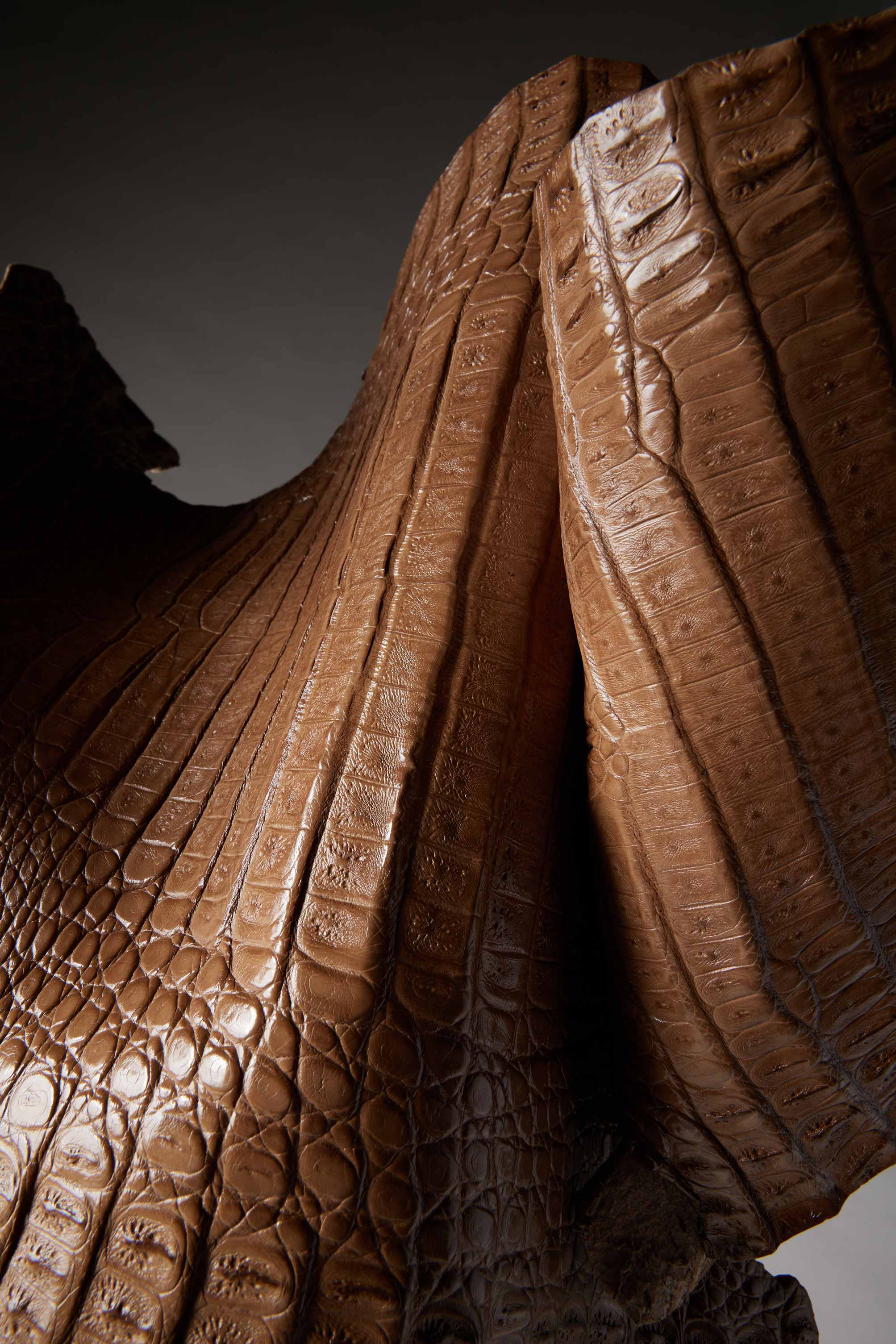 From this vision came a pioneering farm, the only certified caiman operation of its kind in the world. Every skin is sourced with care and responsibility, through conservation-focused practices that support animal welfare and empower local communities with training and fair employment. The entire process is transparent, fully traceable and deeply respectful of the environment that sustains it.